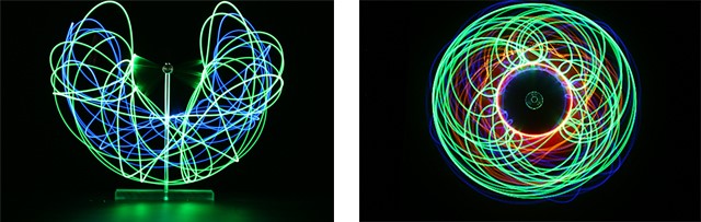 LED軌跡(通過(guò)智能手機(jī)拍攝)與2018年開(kāi)發(fā)的高級(jí)陀螺儀一樣,此產(chǎn)品也是與悠悠球共同策劃和開(kāi)發(fā)。