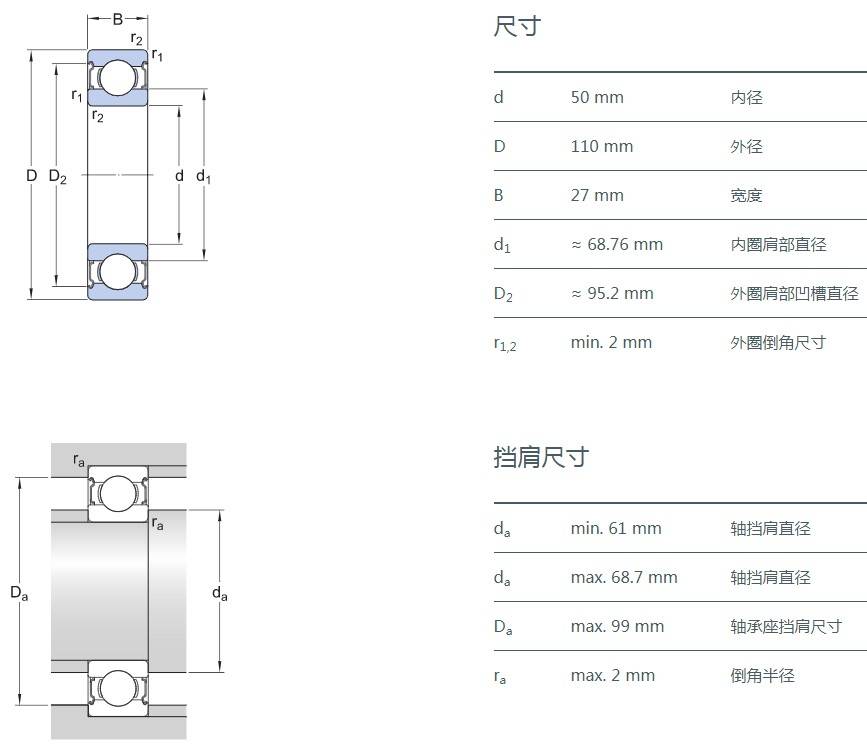 SIAIF不銹鋼深溝球軸承 S6310-2Z 詳細參數(shù)
