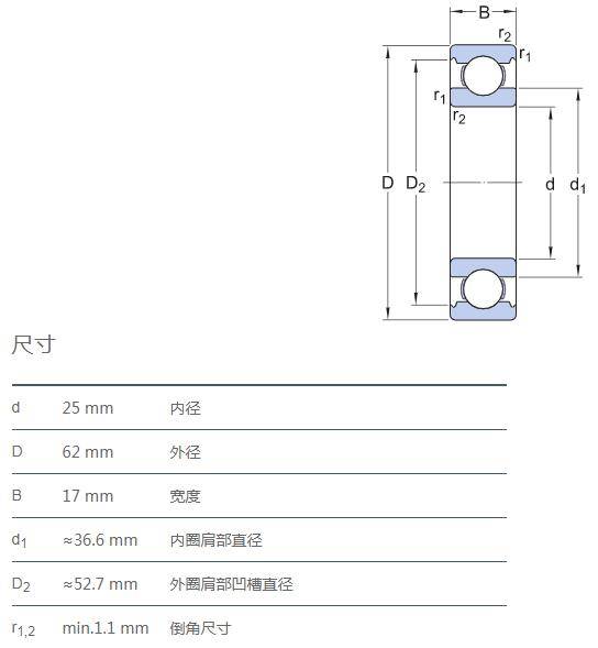 SIAIF耐高溫石墨自潤滑軸承 6305-2Z/VA208 詳細(xì)參數(shù)