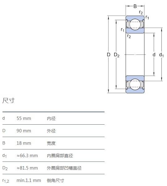 SIAIF耐高溫石墨自潤(rùn)滑軸承 6011-2Z/VA208 詳細(xì)參數(shù)