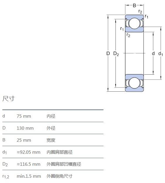 SIAIF不銹鋼深溝球軸承 S6215-2Z 詳細(xì)參數(shù)