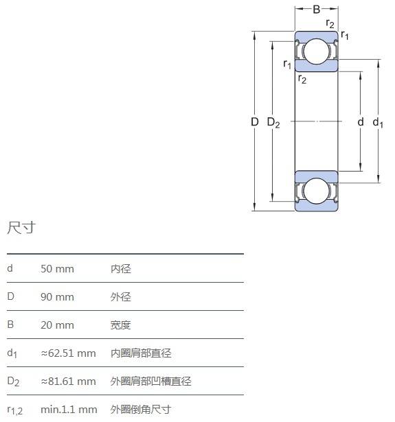 SIAIF不銹鋼深溝球軸承 S6210-2Z 詳細參數(shù)