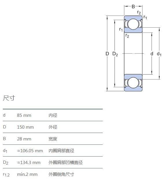 SIAIF滿球耐高溫深溝球軸承 970217 詳細參數(shù)